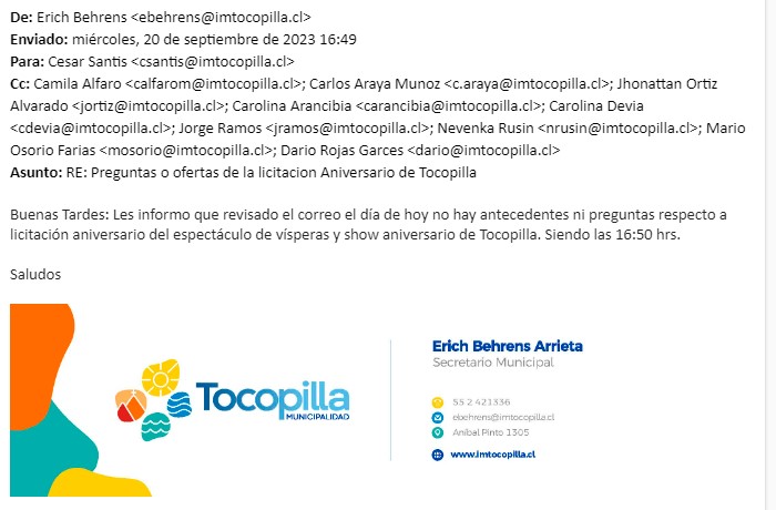 Preguntas Licitación ESPECTÁCULO DE VÍSPERAS Y SHOW ANIVERSARIO 180 DE TOCOPILLA